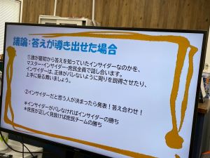 そして最後に、今までの言動からグループの中で誰がインサイダーなのかを話し合って当ててもらいます。