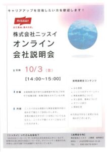 ZOOMにて「株式会社ニッスイ」様のオンライン会社説明会を開催いたします!