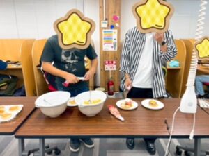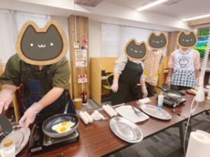 土曜日イベント、料理レクは月見バーガーを作りました!