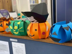 ハロウィンかぼちゃの帽子作りと壁面飾り作りの様子をご紹介いたします!