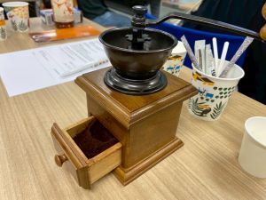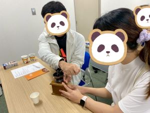 コーヒーミルで、コーヒー豆を挽く体験をさせていただきました!
