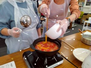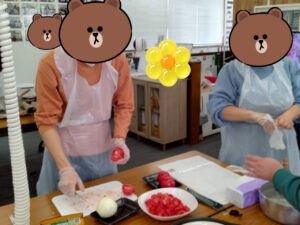 役割をお決める、包丁を渡す、材料を刻む、味見を頼む🥄